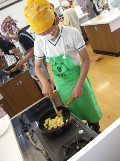家庭科の時間に調理実習をしました。安全な器具や用具の使い方の学習で,焼フルーツ作りをしました。北校舎いっぱいに甘酸っぱい香りがただよい,思わず唾を飲み込んでしまいました。とっても楽しく学習できました。