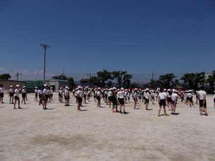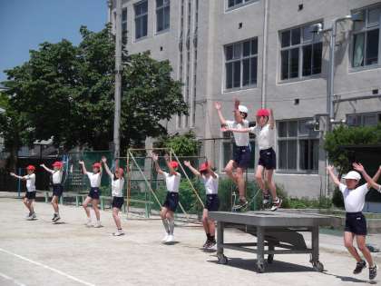 さわやかな五月晴れの中,運動会の全校ダンスの練習が始まりました。ダンス係の子が前に立ち,動きの一つ一つ見本を見せながらみんなで踊っていきました。これから毎日,中間休みに練習します。運動会の日には,全校みんなの動きが一つになって,素敵な運動会の開幕になることでしょう。