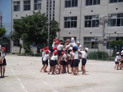 高学年の団体競技「騎馬戦」の練習が白熱してきました。映画「レッドクリフ」の音楽に合わせ,闘志満杯で,さすが高学年,気迫を感じます。運動会本番の好勝負に期待が高まります。