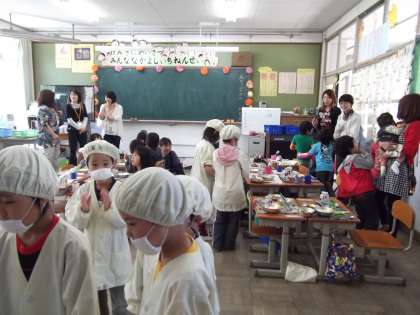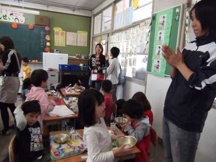 試食会で保護者の方々がたくさん来てくださっていたので,給食当番の子どもたちも張り切って配膳をしていました。本日のおかずはビビンバとわかめスープ,おいしそうに食べている様子を見ていただけたのではないでしょうか。食器に残ったトックをどうしたのか聞くと,「お餅大好きだから最後に食べるの。おじいちゃん家でもたくさん食べたよ。」と話してくれる子もいました。いつも以上によく食べていました。