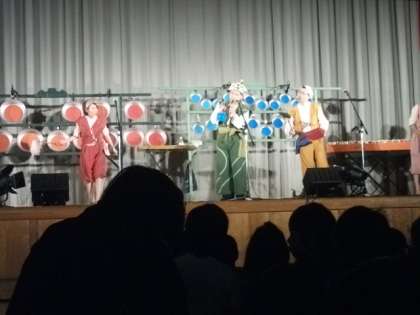 今年度は,音楽劇団てんてこのみなさんに『手づくり楽器いっぱいコンサート』を開いていただきました。身近にある道具を使っていろんな音をだしたり,曲を演奏したりしてくれます。「あの道具,見たことある!」「この曲知ってるー!」大盛り上がりの70分でした。