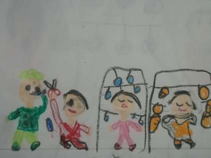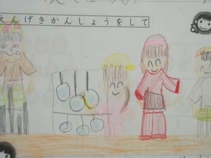 「てんてこさんが,カンとかでいろんながっきをつくっていたからすごかったです。いえにあるものをつかって,がっきがつくれるんだなとおもいました。」