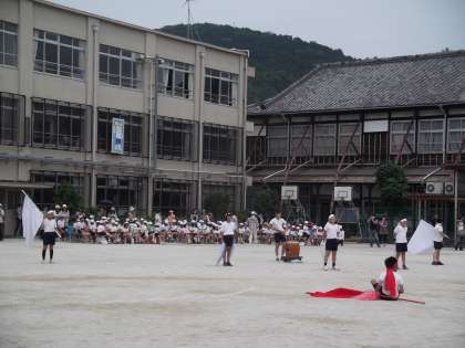 応援合戦でお互いの健闘をたたえ合って,午後のプログラムが開始しました。よいお天気になり,気合を入れ直して残りの競技に取り組みました。