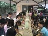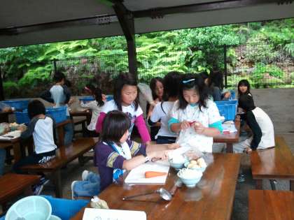 2日目の夕食は野外炊事で、カレーライスを作ります。食べやすいように細かくしようと、泣きながら 玉ねぎを切っていました。ご飯係は、飯盒のコーティングをしっかりしています。かまど係も、熱さに負けずうちわでしっかり火をおこします。学校で練習した甲斐あって、おいしいカレーができあがりました。