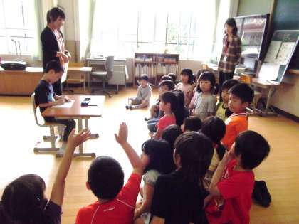 1年生と3組とで交流学習をしました。まず初めに,3組のお友だちがどんな学習をしているかを,担任から話しました。次に1年生から,学習のことや給食のことなどの質問がでました。最後にみんなで歌を歌ったり,貨物列車遊びをしたりしました。