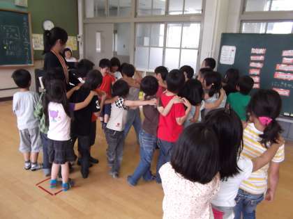 運動会のダンスや競技を一緒にしたので,みんな仲良く遊ぶことができました。休み時間に3組の部屋でまた一緒に遊ぼうと話していました。
