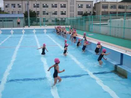 今日から水泳学習が始まりました。来週の火曜日まで1・2年生が低水位での水遊びに取り組みます。今日は今年度最初のプール!2年生は朝からわくわく!うきうき!です。今日は最初ということで,まずプールに入るときの約束を確認しました。2年生のみんなは,1年生のときのことをしっかり覚えていて,1年生のお手本となっていました。さすが2年生!1年生のことを励ます姿も見られ,心があったかくなりました。
