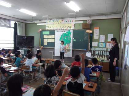 3年生は,社会「京都市のまちのようす」で,グループごとに調べたことを発表しました。「川がどちらからどちらに流れているか。」「工場の多い地域はどこか」など,まず予想したことをクイズにしたりして発表していたので,聞く側も興味をもって学習することができました。