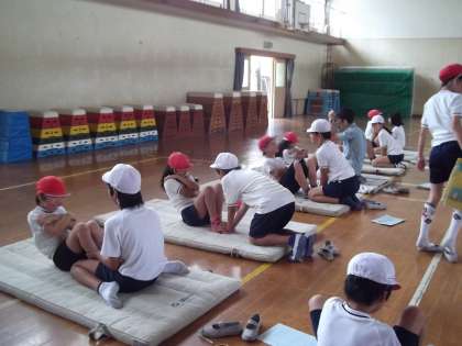 高学年がスポーツテストをしました。5・6年でペアを組み,立位体前屈やソフトボール投げなど7種目のテストをしました。暑い中でしたが,自分の体力を知るためがんばって取り組んでいました。