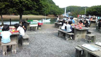 漁船に手をふりながら,ゆったり朝ごはんをいただきました。