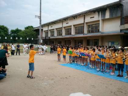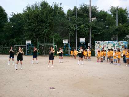 8月27日(土)に行われました月輪夏祭りに,今熊野小学校の金管バンドクラブが,今熊野小・一橋小・月輪小の三校合同バンド「メープルミュージックキッズ」として出演しました。