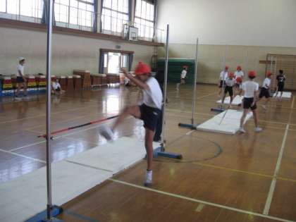 6年生は,体育で走り高跳びをしました。身長と50m走のタイムから割り出した自分の目標をもち,助走や足の振り上げ,空中動作を工夫して何度も挑戦しました。中には1m以上を跳ぶ子もいて,グループで拍手がおっこっていました。