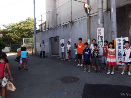 今週は,今熊野小学校,9月の人権・あいさつ週間です。今月から,校門の所にあいさつに立つのが,フレンドリーグループになりました。
