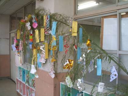 覚えたばかりのひらがなを使って,短冊に願い事を書きました。