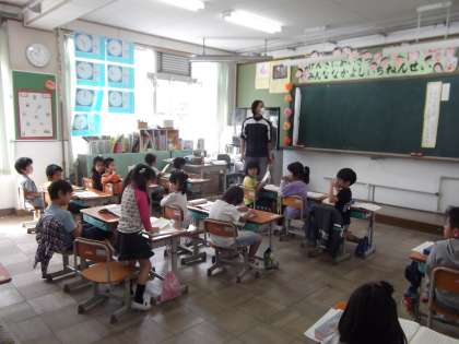 身近な生き物を見つけた経験を活かして,1年生では国語の学習で,生き物カードを作っています。