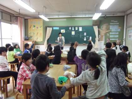 3年生は,学級活動の時間に,大豆が使われている食品について学習をしました。大豆が味噌や醤油,豆腐などになり,豆腐が油揚げなどになることを,クイズを交えて楽しく学びました。自分達が食べている食品や調味料が何からできていて,どんな栄養が含まれているかを知って食するって大切なことですね。