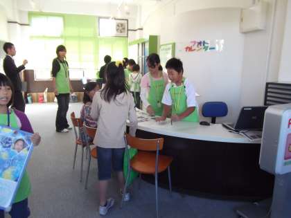 いよいよ,スチューデントシティー,各店の開業です。子どもたちが,店側とお客側に分かれて活動を開始しました。