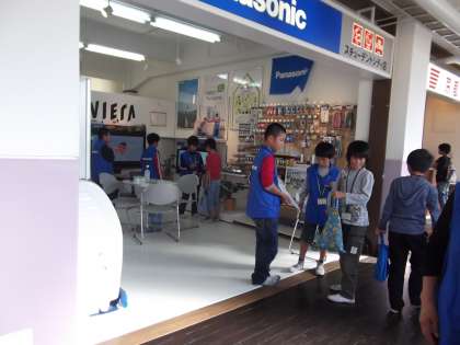 接客の仕方,声の大きさ等々,各お店についてくださっている方からいろいろなことを指導していただきながら,子どもたちはがんばって活動していきました。そして,だんだん慣れてきて,もっと売れるためにと,ボードを出したり,呼び込みをしたり,各店へ回ったりと,自分達で工夫する様子も見られました。