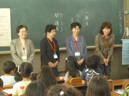 今日は、その1年生の開講式です。地域のアドバイザーの先生、サポーターの先生、大学生サポーターの方、そして2年生のお兄さんお姉さんたち、たくさんの方に迎えられて開講式を行いました。