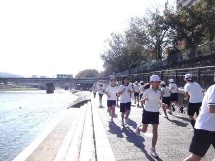 11月4日,第2回東山南部三校合同マラソン大会をしました。1000メートルを2つのグループに分けて走りました。「全力で走れた。」「疲れたけれど走りきれてよかった。」「友だちと一緒で楽しかった。」などの感想が聞かれました。4年生のときから合同でたくさんの行事を三校で行なっている子ども達,仲間達意識も芽生えてきてとっても仲良しです。また,「まだがんばれる。次は全力で行く」と,大文字駅伝下京・東山支部予選会に向けて闘志を見せている子もいました。