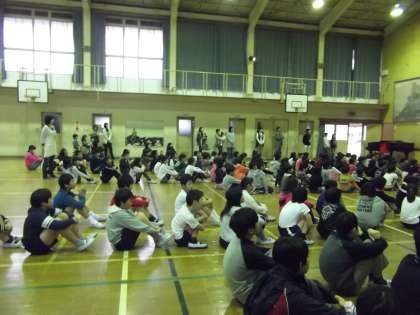 1年生からは,「来年は自分達もお米作りをするのかと思うとが楽しみです。」という感想が聞かれました。また,3年生以上の子からは,「自分たちがお米づくりをした時のことを思い出した。」と2年生の時のことを懐かしむ声が聞かれました。「替え歌がかわいかった。」という感想に「うんうん。」とうなずく姿も見られました。「ぼく達のときは田んぼでこけた子がいたけれど。2年生もこけましたか。」と聞く場面もあり,「こけた。」と手を挙げる子がいて,体育館が盛り上がりました。