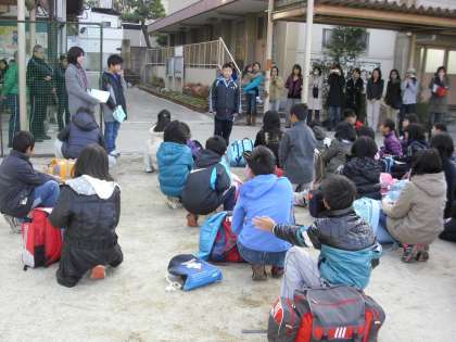 出発式を終え、いざ山の家へ!!今年も、一橋・月輪・今熊野の3校が合同で活動します。今までも3校の友達とは色々な場面で学習をともにしてきました。山の家でも、たくさんの経験を積んで、より交流を深め、そしてたくましく成長して帰って来てくれることと思います。元気に、いってらっしゃい!!