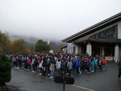2日目がスタートしました。葛野小・楽只小・仁和小と一緒に朝のつどいをおこないました。みんな疲れた様子も見せず、張り切っています。学校紹介もしっかり出来ました。