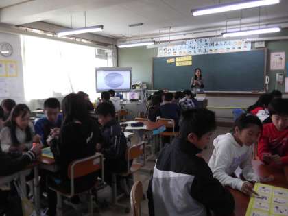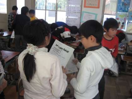いろいろな職業をカルタやビンゴゲームにして,英語での言い方を楽しんで覚えました。その後,2人組みのインタビュー形式で,自分がつきたい職業について英語で聞きあいました。英語での会話を楽しみました。