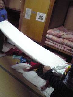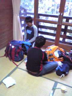 「山の家」最終日になりました。昨夜は寒い中,外でのキャンプファイアーでしたが,1時間余り,子ども達はそれぞれ用意していた出し物をして楽しみました。今日は,朝から寝具の片付けや荷物整理,部屋の掃除をグループの友達と協力して頑張っています。