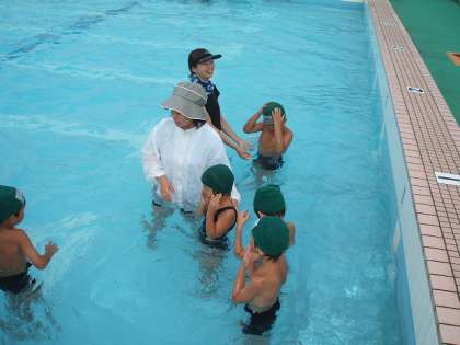 12時から30分間,泳ぎに苦手な児童を対象に「初心者教室」を行っています。