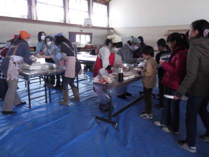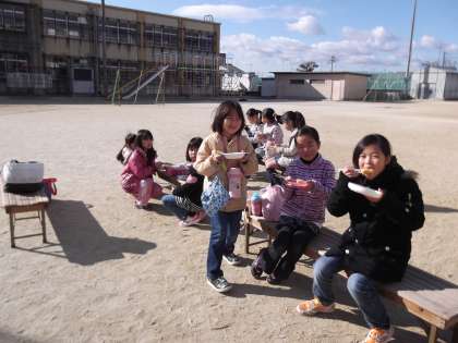 北風の吹く寒い日でしたが,お餅をついたり丸めたりしてくださる保護者の方々も,温かいお餅を食べる子ども達も,笑顔いっぱいで,心が温かくなった一日でした。