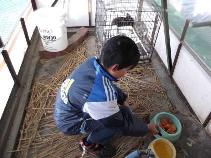 飼育・園芸委員会の子ども達が,冬休みも登校し,花の水まきやウサギの世話をしてくれています。寒くなっても,ウンチがいっぱいたまっていても,嫌な顔をせず,笑顔で花やウサギの世話をしてくれています。卯年の一年,アーウィンもナナも(ウサギの名前)元気に過ごせたのは,委員会の子ども達の献身的な世話があったからです。辰年の来年も2匹が元気に過ごしてくれ,学校が花に囲まれることを願っています。