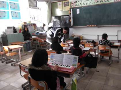 1年生の教室から鍵盤ハーモニカの音が聞こえます。冬休みに入っても,子どもたちが学習に来ているのです。冬休みの宿題をしている子もいます。他の学年でも,それぞれの課題をもって学習に取り組んでいる子がいます。「ゆっくり教えてもらえるので,よく分かった。」「今日はこれだけがんばったよ。」と話す子ども達の目が輝いて見えました。がんばる今小の子ども達です。