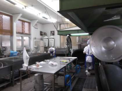 1月10日(火)の授業再開日から,給食も再開します。給食調理員さんが,朝から給食室の掃除をしています。食缶や食器をはじめ,調理用具や床も綺麗に掃除して,子ども達に衛生的で美味しい給食を出せる準備をしています。