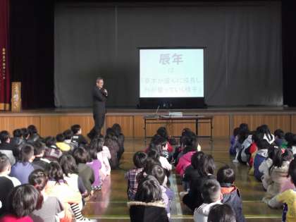 授業再開の朝会がありました。学校長より,今年の干支「辰」についての話がありました。「辰という言葉には,『草木が盛んに成長し,形が整っていく様子』という意味があります。みなさん一人ひとりが盛んに成長し,立派な今熊野小学校をつくってくれることが,校長先生の願いです。」と話されました。また,「昨年度を表す漢字は『絆』だった。6年生が心描いた漢字は『愛』だった。さて,自分自身の今年はどんな漢字で表せるようになるか,楽しみに一年間を過ごしていきましょう。」との話もありました。