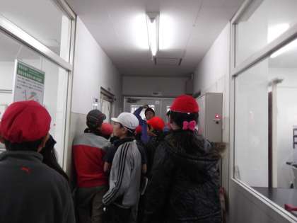 その後,工場内を見学させていただきました。あちこちで,「安全第一」の文字や消火の設備が見られることに,子ども達は驚いていました。車の重量を計る装置にも乗らせてもらって楽しかったです。工場内の方どの方も,子ども達にあいさつしてくださって,とてもうれしかったです。