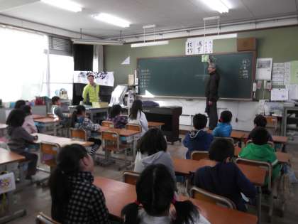2年生と3組さんが,お米マイスターの長谷川さんに来ていただいて,食育の学習をしました。2年生が経験したお米作りの振りかえりや,『ごはん・お米とわたし』の作文・図画コンクールの入賞作品(石巻の子どもの作品)を紹介して食べ物の大切さの話をしてくださいました。また,子どもたちが体の中にある腸をイメージしやすいように,ホースを使ってお話もしてくださいました。子ども達も,ご飯の大切さを改めて感じたようでした。