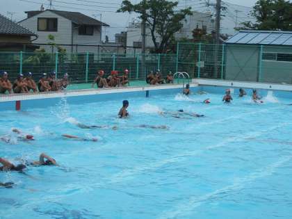 小雨が降りましたがプール実施