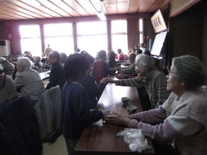 すこやか健康教室で,1年生が地域のお年寄りの方と交流をしました。1年生は,『たき火』『お正月』『ひな祭り』など,季節の歌を歌いました。かわいい歌声に,お年寄りの方々の顔もほころんでいました。最後に『マルマル・モリモリ』を踊りました。最後に握手をして歩くと,お年寄りの方々が,1年生のかわいい手をぎゅっとにぎってくださっていました。1年生の子ども達もとっても喜んで,踊りながら教室に帰っていく姿が見られました。