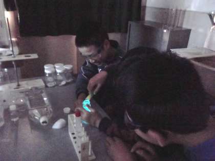 まず始めに,ルミノール反応(血液の反応があるかどうか)をみる実験をしました。瓶に入った液に薬を混ぜ,教室を暗くしてそこにもう1つ液を入れると,瓶の中があっと言う間に光出しました。子ども達は,「うわぁぁぁ。」と一瞬にして,化学実験に引き込まれました。その後,白い粉に,水をかけると膨らむ様子も驚きいっぱいで見ていました。また,にごった水を綺麗にする実験では,子どもたちは,薬品が濁りといっしょに沈んだ液を楽しそうに濾過していました。界面活性剤をベースにした石鹸づくりもさせていただき,「自分の石鹸だ!」と,とても大事に持って帰りました。三洋化成が,世界で初めて開発した吸水性樹脂の実験では,水を吸った後の吸水性樹脂を指で触って,「ほんとだ。少しも流れ無し,指にも水がつかない。」と感心していました。吸水性樹脂が水を含むだけでなく発散もし,砂漠や屋上緑化などにも応用されていることを教えてもらいました。子ども達も,化学が自分達の生活のいろいろな面に役立っていることを,実感しました。