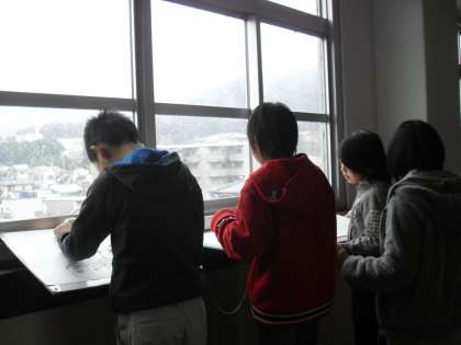 今熊野小学校は,東山の高台にあり,校庭から京都タワーが真横に見え,夕日に映えてとても綺麗です。3階の校舎からは,京都市南部が一望でき,北西に左大文字や舟形の跡もはっきり見えます。この素晴らしい立地条件を,子どもたち学習に活かしていきたいです。