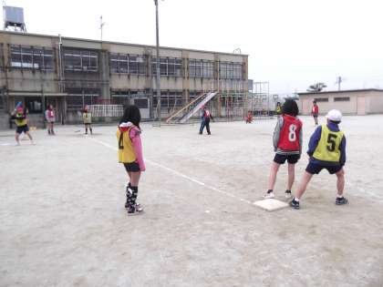 5年生は体育でベースボールをしています。今年新しく,とても柔らかいボールを購入しました。また,テニスラケット打ちをするのもOKというルールを決めて,全員の子が無理なく取り組めるよう工夫しゲームを進めています。柔らかいボールは,少年野球をしている子にとっては勝手が違い扱いにくそうでしたが,全員とても楽しんでゲームを進めていました。