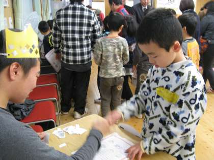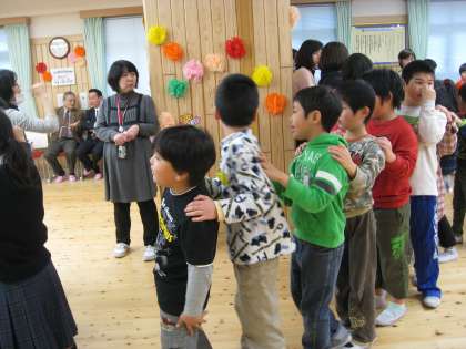 まず,ラーメン体操をして盛り上がりました。みんなが大好きなダンスです。最初は久しぶりで少し緊張気味だった子どもたちも,一気に笑顔になっていました。そのあと,ふうせんバレーやかもつれっしゃなどのゲームで楽しい時間を過ごしました。最後に6年生からのあいさつがありました。在校生からは写真たてをプレゼントしました。