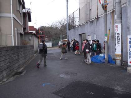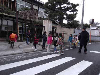 先週は春の暖かさを感じたのに,寒の戻りか,今日は屋根に雪が積り,子ども達が登校してくるころにも雪が舞う寒さでした。しかし,元気なあいさつの声が両門から聞こえてきました。当番の子が,「やっと自分の番が回ってきた。」と大張りきりでした。そして,1年の子と5年の子が楽しそうにしゃべる姿が見られました。全校でのあいさつ運動の取組が,学年の枠を超えて,子どもたちの結びつきをより強くしてくれました。