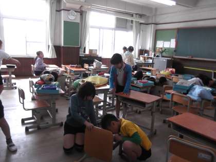 新学期,新しい教室に入って2日め,学習の準備が始まりました。