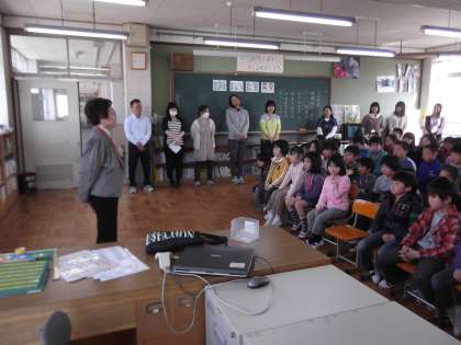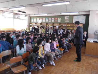 平成24年度の放課後まなび教室の開講式がありました。2〜6年生までの53人,地域のアドバイザーやサポーター,大学生のサポーターの方々,学校の教員など,たくさん集まっての開講式でした。放課後まなび教室で,地域の方々に支えられ,子ども達は昨年一年間で大きな成長を見せてくれました。今年もみんながんばってほしいです。
