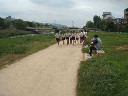 6年生の大文字駅伝東山支部予選コース(鴨川 丸太町〜荒神口コース)を陸上クラブ高学年の児童が走りに行きました。