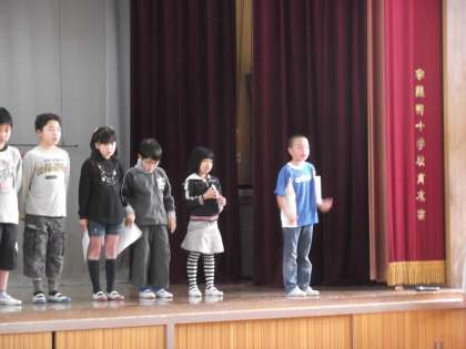 児童会の前期代表委員,各委員会長の認証式をしました。認証書を受け取った後,一人ひとり,今の意気込みを発表しました。「みんなが笑顔でいられる学校にしたいです。」「楽しい学校にしたいので,自分からあいさつしたいです。」「みんなが喜んでくれるように委員会の仕事をがんばってしたいです。」等々,大きな声で一所懸命言う姿がとても頼もしく感じられ,きっと今年もよい活動をしてくれ,楽しい今熊野小学校になることと思いました。