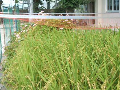 夏休みに水の管理,雑草抜きをがんばりました。穂が垂れてきています。
