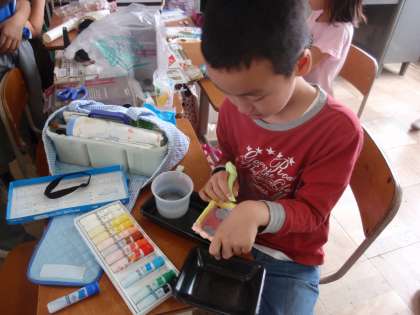 交流学習では,運動会に向けてのダンスの練習をがんばっています。また今日は図工で空き容器に紙粘土をつけて小物を作りました。紙粘土のフワフワの感触がとても気持ちよかったです。